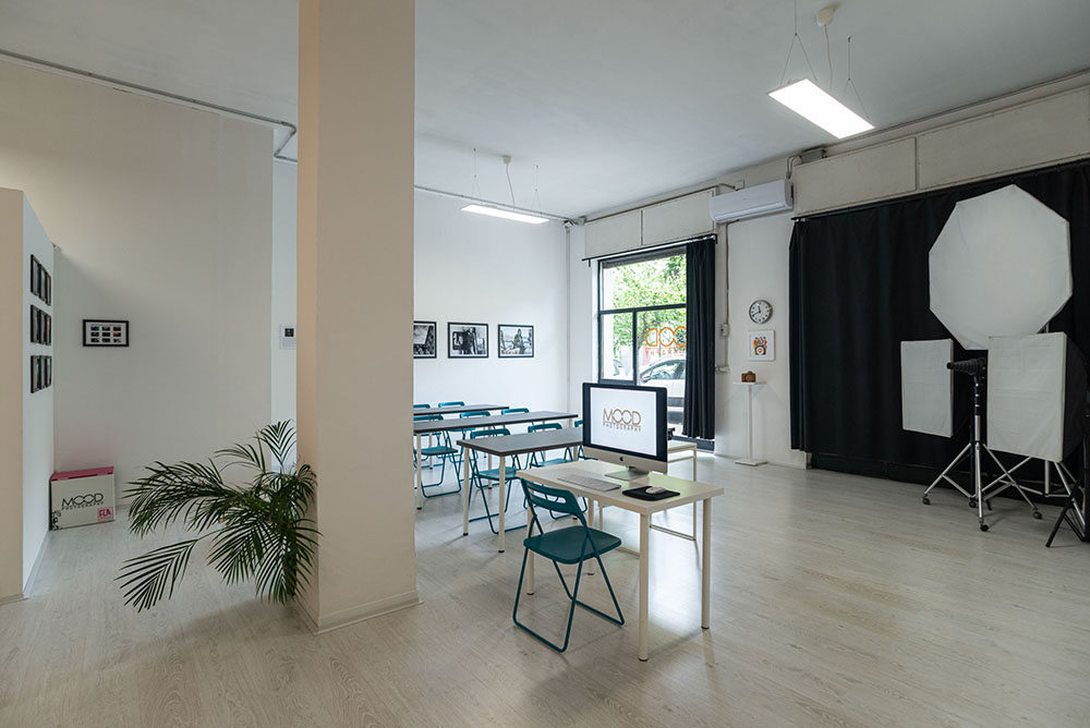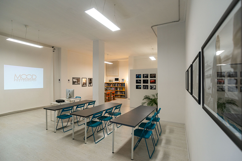 L'ambiente, confortevole e accogliente per le lezioni teoriche, è dotato di una sala di posa totalmente attrezzata, utile sia per l'insegnamento delle tecniche di ripresa in studio, che per lo sviluppo di progetti fotografici inerenti la didattica stessa.
